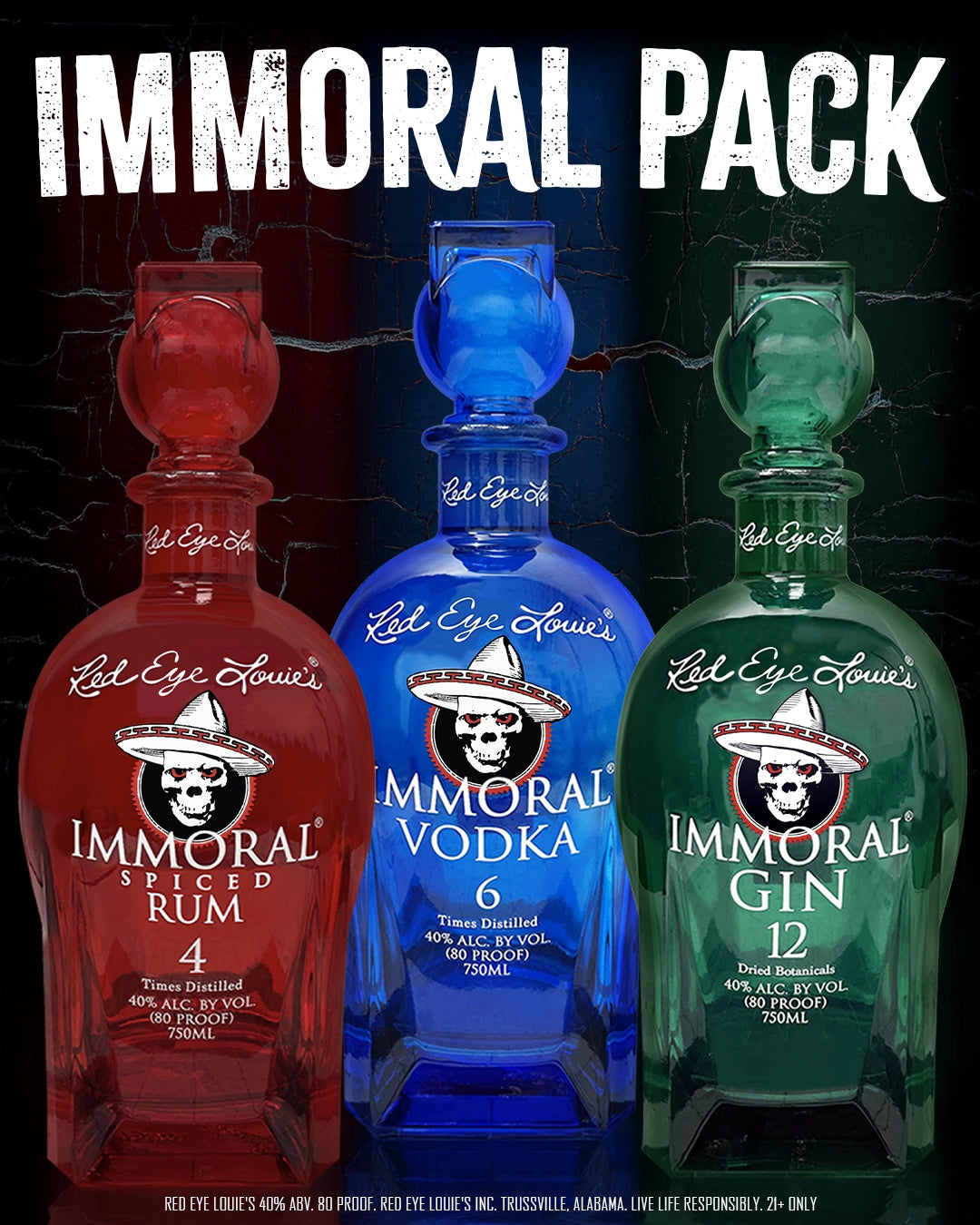Red Eye Louie's Immoral. Immoral Gin Immoral Spiced Rum Immoral Vodka